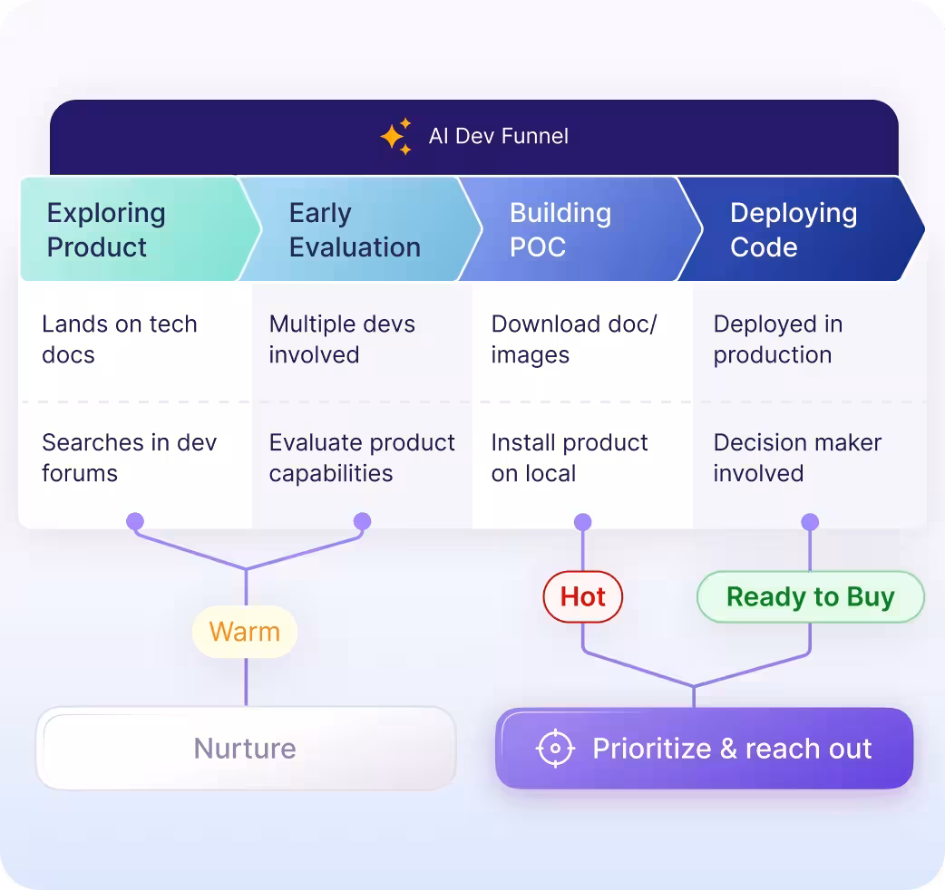 - In-product signals such as feature usage, session data seem to be missing, which further makes it difficult for devtool teams to accurately pinpoint buying intent, and might have to rely on integrating a tool that does provide these signals.
