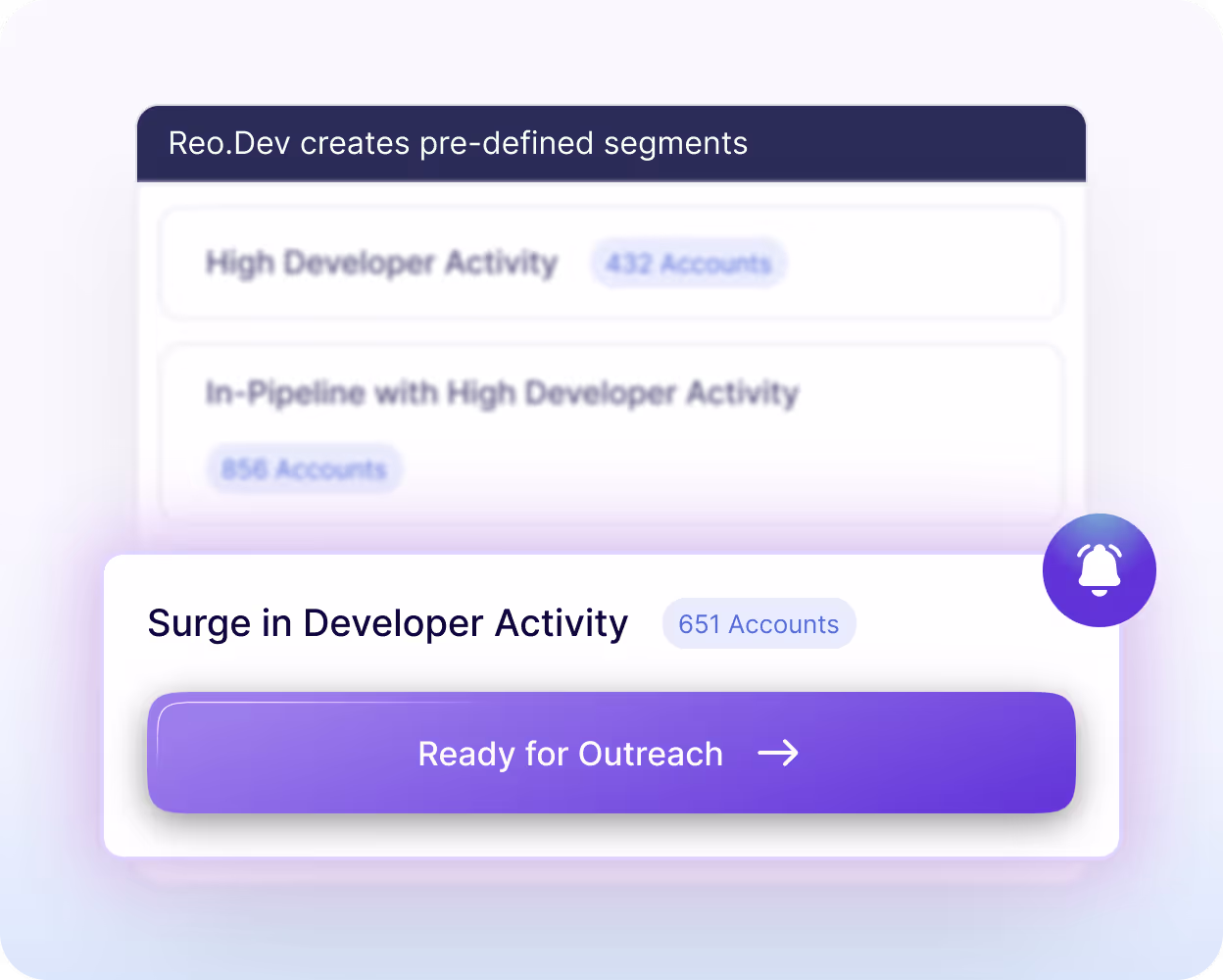 Leverage pre-built segments like "High Developer Activity" or "Surge in Interest" to instantly act on key accounts or leads.